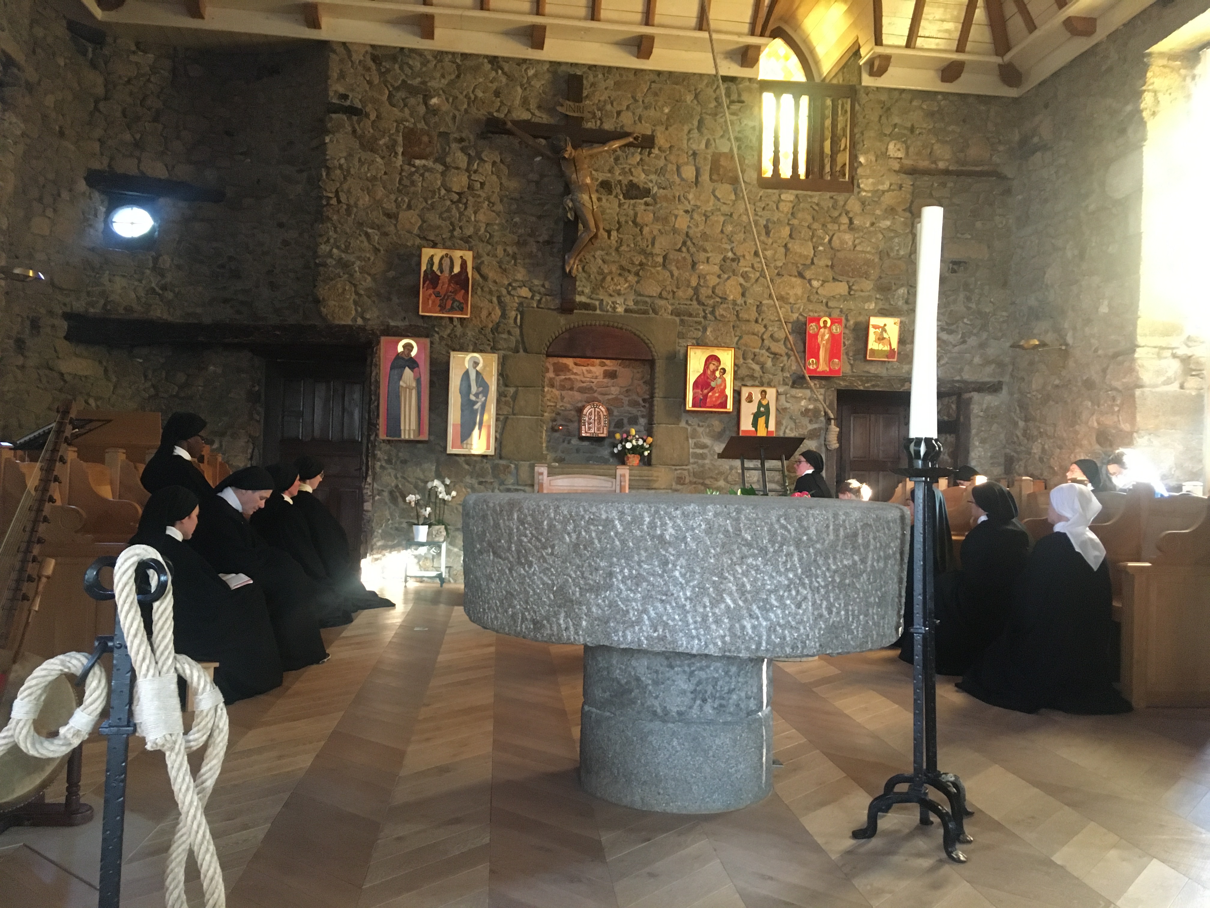 C'est en groupe que nous nous y sommes rendu pour un petit WE de réflexions et de prières. Nous avons assisté à des offices avec la communauté qui portaient les prière très haut par leurs chants. Dieu devait les entendre à n'en pas douter. Le lieu est un ancien manoir bien aménagé pour l'accueil de otre petit groupe et (j'imagine) également pour la communauté (je n'ai pas été chez elles).
